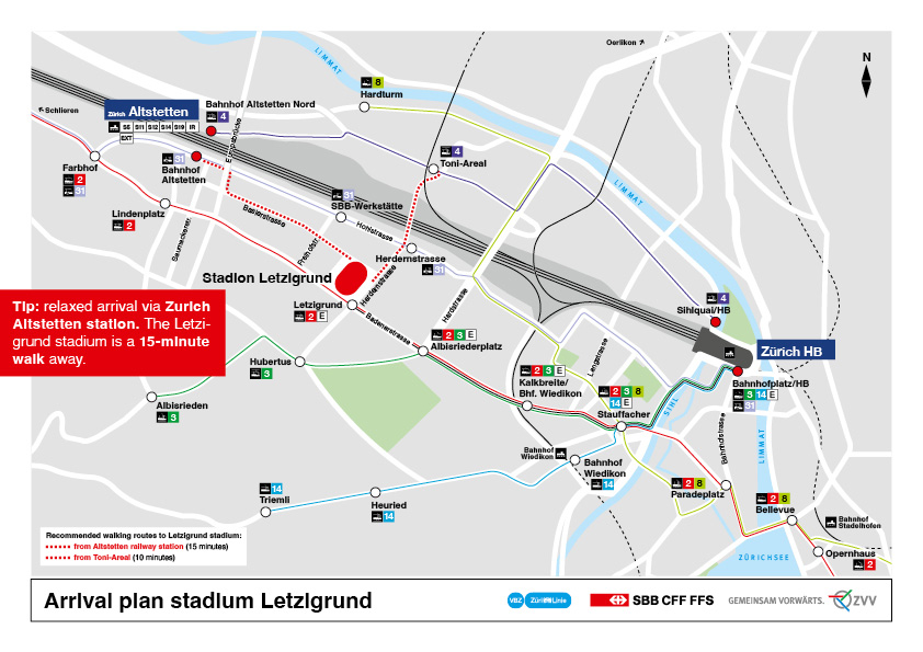 Beschränkte Anzahl Parkplätze rund um das Stadion Letzigrund: Einkaufszentrum Letzipark (5 Minuten zu Fuss) Park-and-ride Bahnhof Altstetten (mit den öV) Wir empfehlen die Anreise mit den öffentlichen Verkehrsmitteln.