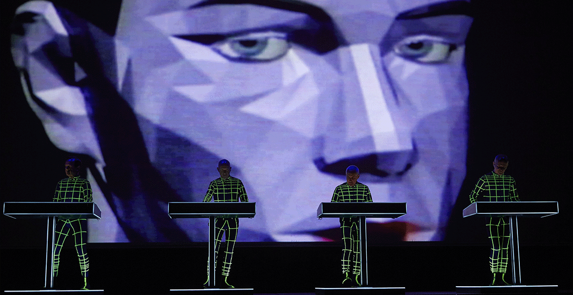 Le performance dei Kraftwerk sono più che semplici concerti: con animazioni 3D coordinate con precisione e una chiara estetica visiva, i Kraftwerk creano una connessione tra musica e tecnologia. L'idea di "uomo-macchina", tema centrale del loro lavoro, non si realizza solo musicalmente, ma anche visivamente. I visitatori sperimentano una produzione immersiva - e a tal fine sono dotati di occhiali 3D.