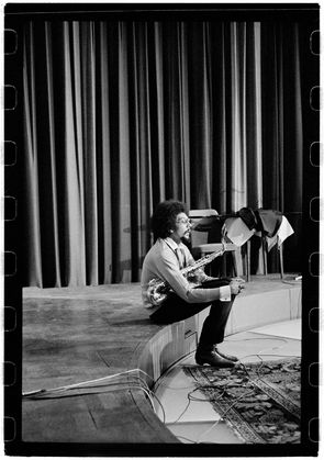Dizzy Gillespie che fa ginnastica sul tappeto del Montreux Palace. La foto del 1975 è la copertina di un libro sui grandi del jazz, del rock e della musica popolare mai pubblicato prima. Si tratta della storia del Montreux Jazz Festival. Esperienze, episodi, aneddoti, raccontati dagli stessi protagonisti e luminari di questo evento.